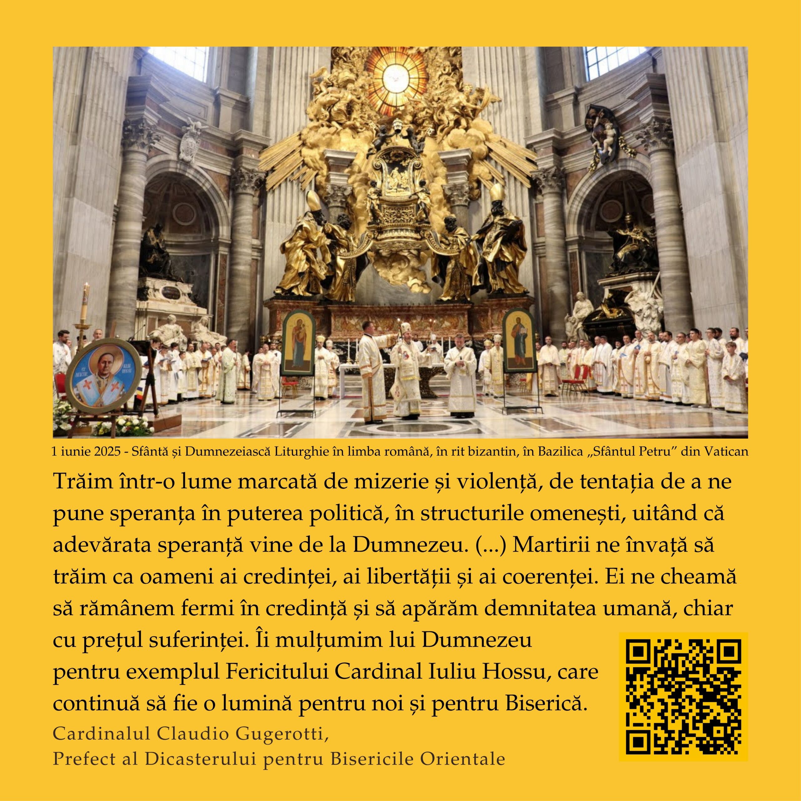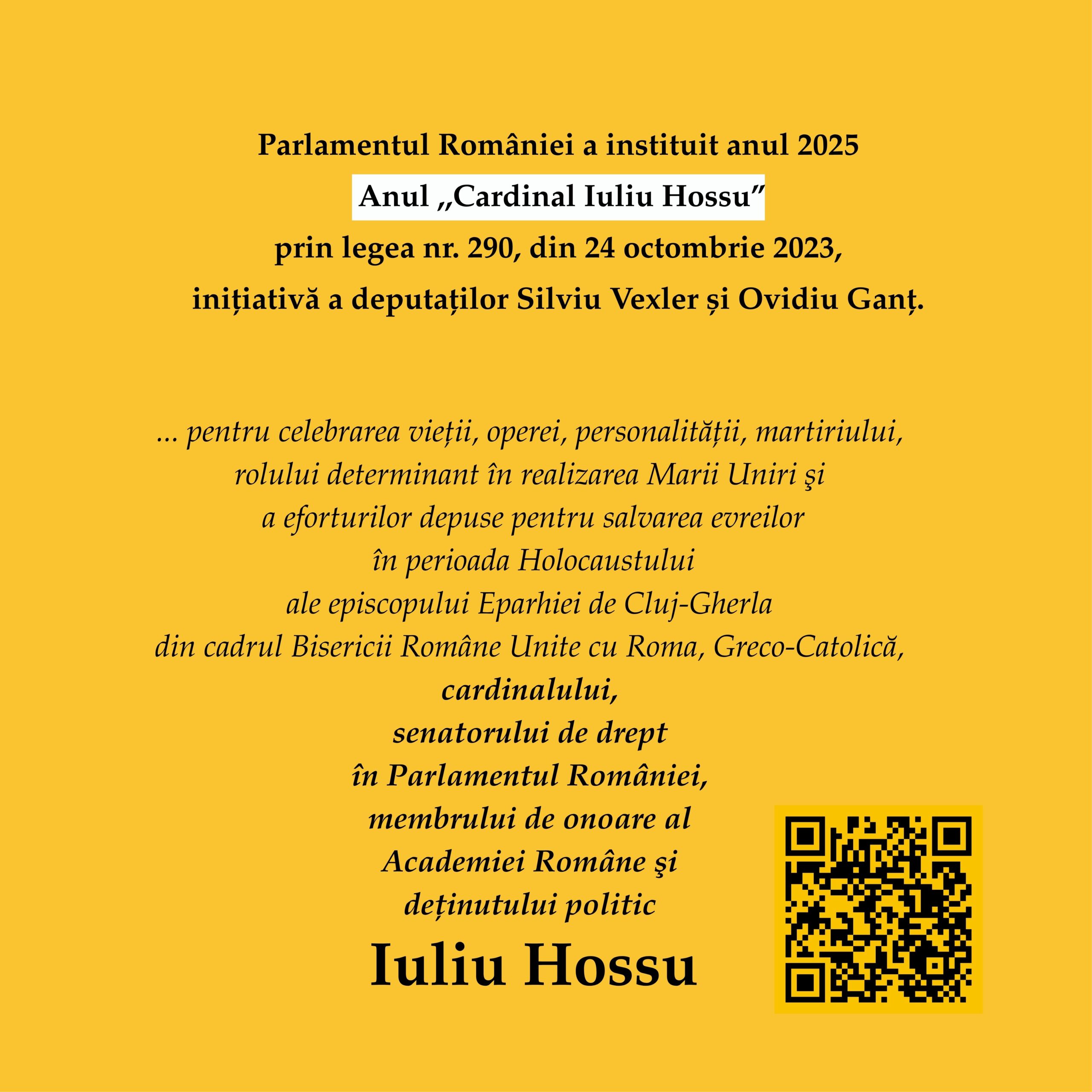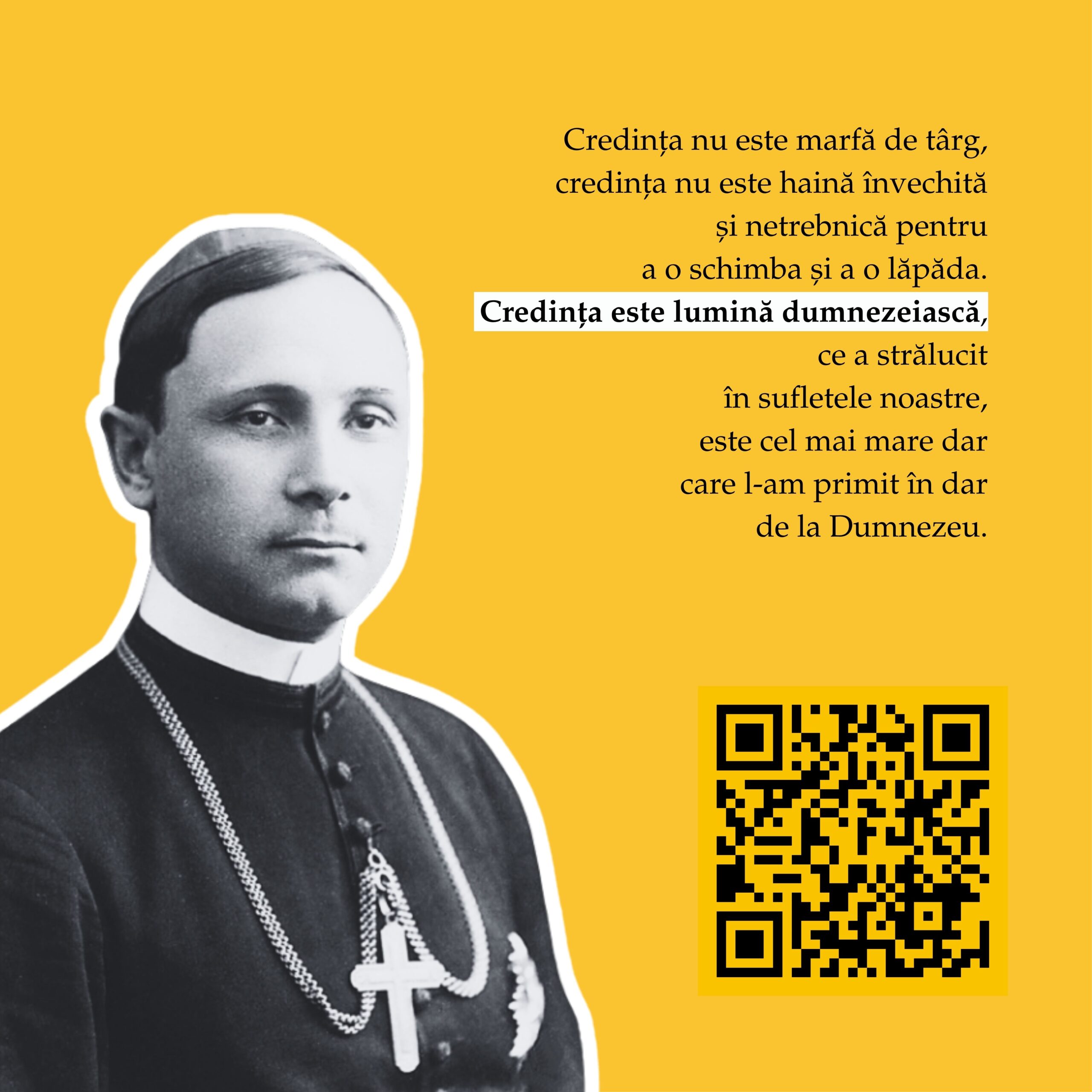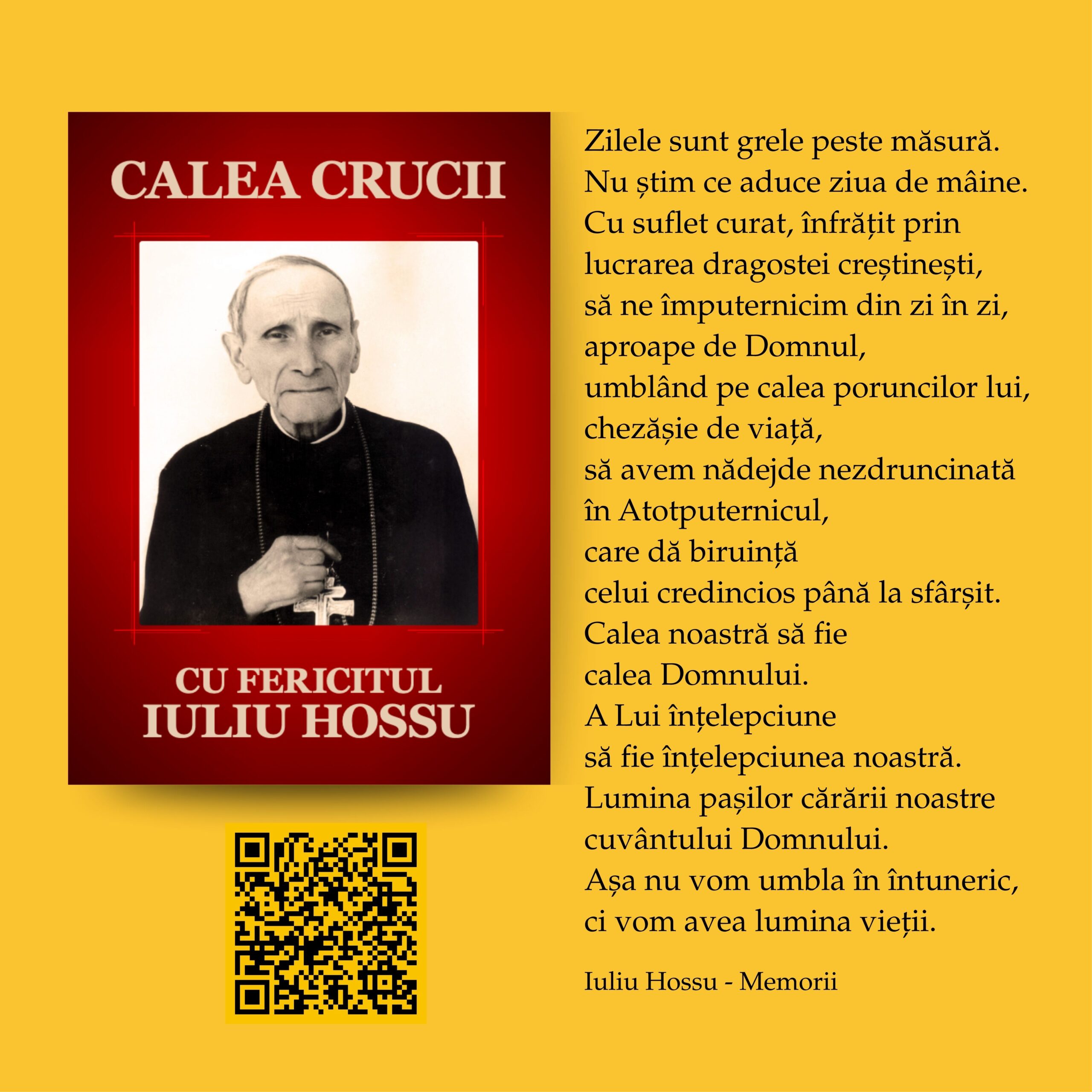 În perioada 1 – 11 octombrie 2025, pe instalația 10×10 a Muzeului Național de Istorie a Transilvaniei (Bd. Eroilor, Cluj-Napoca), publicul este invitat să viziteze expoziția interactivă „Fericitul Cardinal Iuliu Hossu – O viață întreagă pentru Biserică și România”, dedicată unuia dintre cei mai mari păstori și mărturisitori ai credinței din secolul XX.