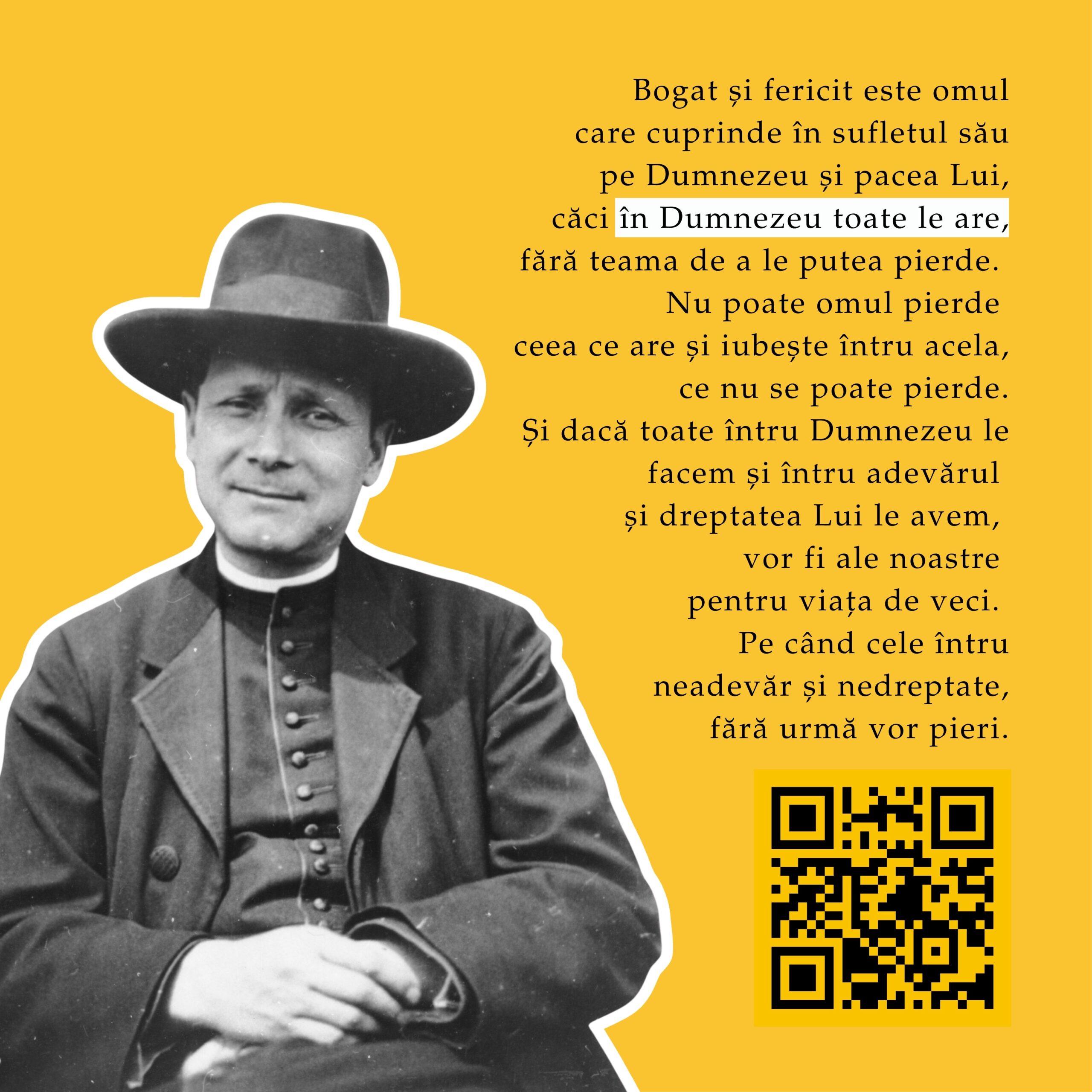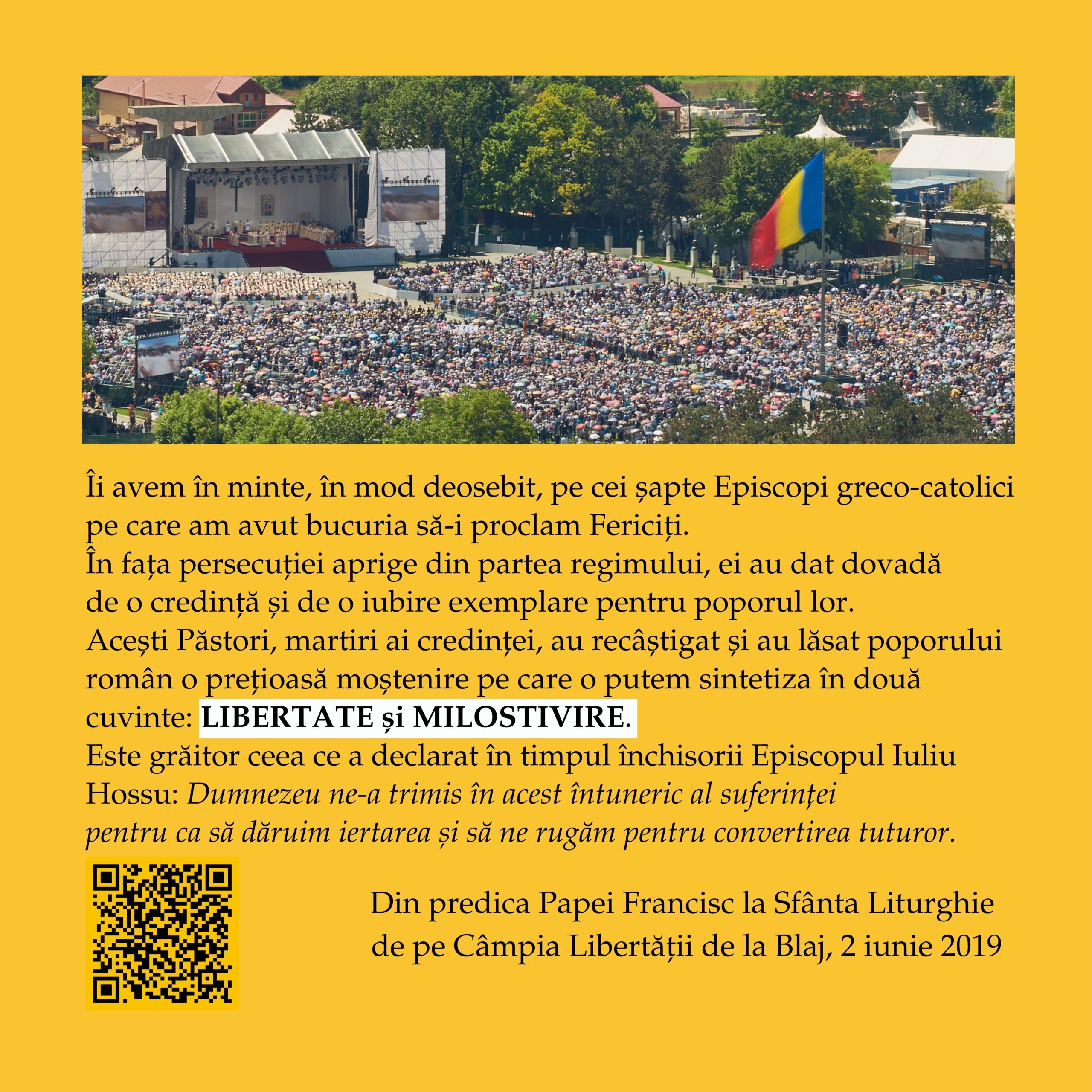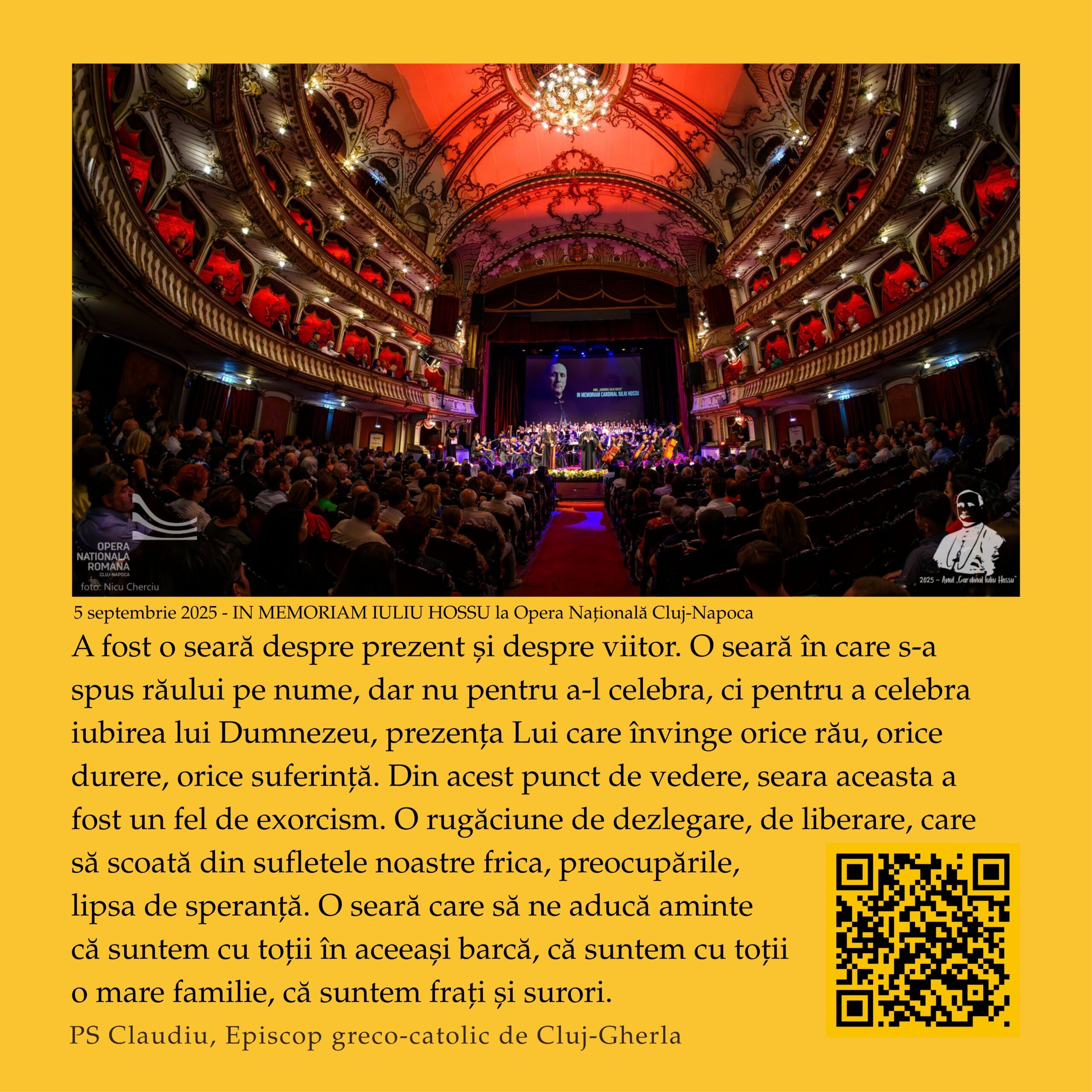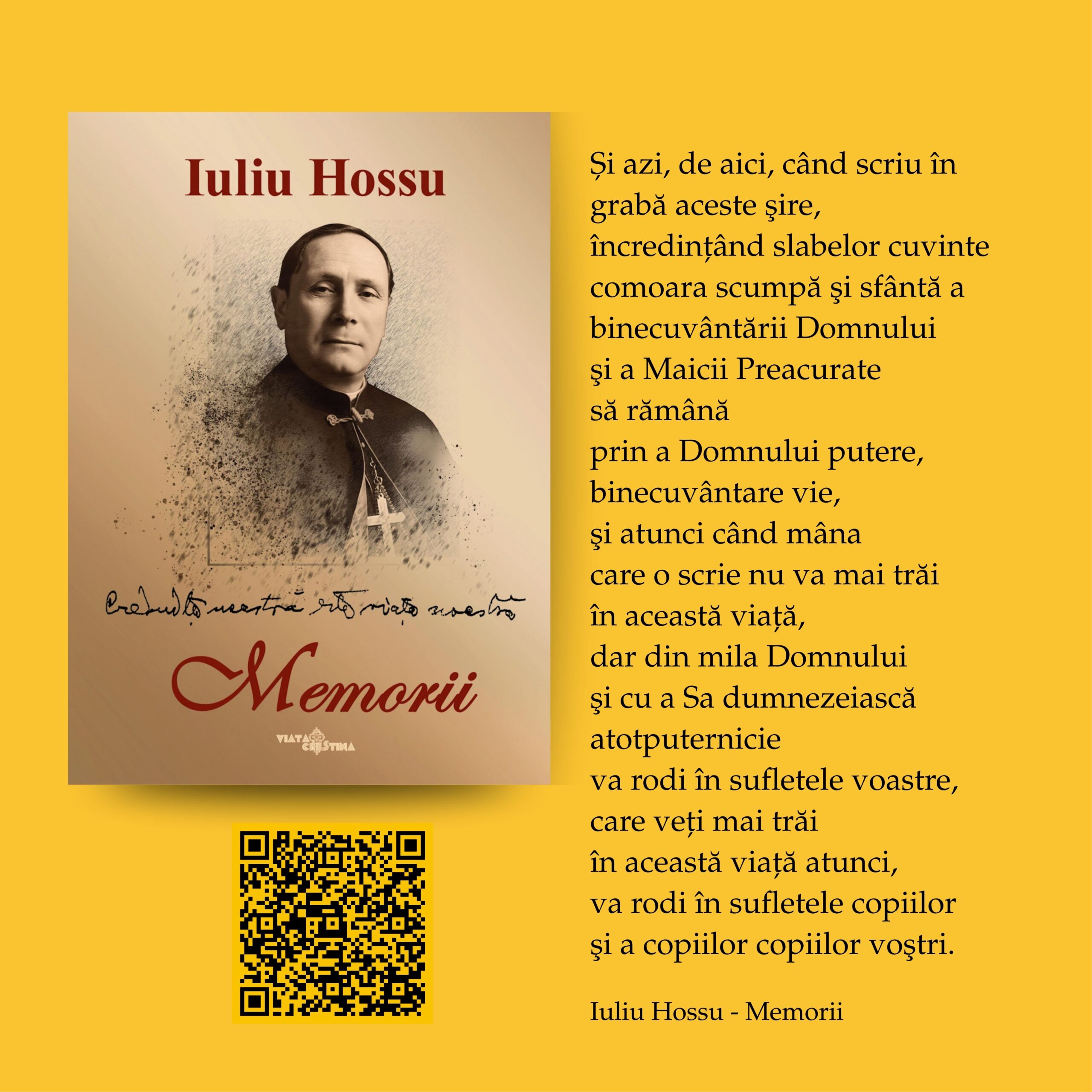 În perioada 1 – 11 octombrie 2025, pe instalația 10×10 a Muzeului Național de Istorie a Transilvaniei (Bd. Eroilor, Cluj-Napoca), publicul este invitat să viziteze expoziția interactivă „Fericitul Cardinal Iuliu Hossu – O viață întreagă pentru Biserică și România”, dedicată unuia dintre cei mai mari păstori și mărturisitori ai credinței din secolul XX.