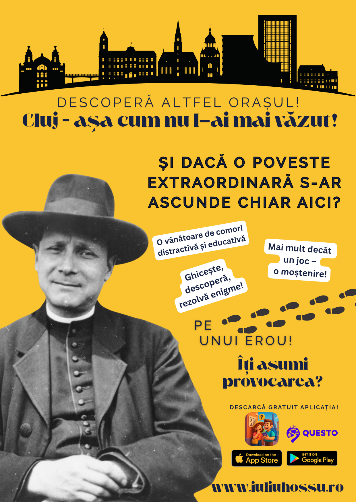 În Anul Național „Cardinal Iuliu Hossu” – 2025, locuitorii și vizitatorii Clujului sunt invitați să descopere orașul într-un mod inedit, printr-o nouă experiență digitală disponibilă în aplicația Questo: turul interactiv „Pe urmele Cardinalului Iuliu Hossu”.
